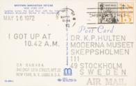 Description "I GOT UP"- serien utgörs av vykort med på baksidan stämplad information om klockslag när On Kawara gick och var han vid tillfället befann sig. On Kawara sände två vykort per dag från olika platser i världen, till vänner och bekanta, främst inom konstvärlden. Serien påbörjades i Mexico City 1968 och pågick utan avbrott till september 1979, då On Kawara var i Stockholm. Under sin vistelse i Stockholm blev han bestulen på sitt material och därför avslutade han "I GOT UP". Samtliga 116 vykort i Moderna Museets samling är sända till Pontus Hultén och täcker ett tidsspann mellan den 14/5 - 7/9 1972. Signatures, inscriptions and marks Signerad med stämpel som en del av konstverk, Stämplad text på vykortets baksida: MAY 16 1972 I GOT UP AT 10.42 A.M ON KAWARA 340 EAST 13TH STREET, APT.12' NEW YORK, N.Y. 10003 U.S.A. DR. K.P.HULTEN MODERNA MUSEET SKEPPSHOLMEN 111 49 STOCKHOLM AIR MAIL". Selected exhibition history Pontus Hulténs samling (2004) Moderna Museet, Stockholm On Kawara - Silence (den 6 februari 2015 - den 3 maj 2015) The Solomon R. Guggenheim Museum Sju rum och en trädgård. Rashid Johnson och Moderna Museets samling (den 28 september 2023 - den 22 september 2024) Moderna Museet, Stockholm The Moderna Museet exhibition catalogues Pontus Hulténs samling Bibliography Pontus Hulten: artisti da una collezione; Milano, Skira 2006 [utställningskatalog: Venezia, Instituto Veneto di Scienze, Lettere ed Arti, Palazzo Cavalli Franchetti, 5 marzo - 9 luglio 2006; Con la collaborazione di Moderna Museet], s. 137. Pontus Hulténs samling..., red. Iris Müller-Westermann, Nathalie Meneau, Teresa Hahr, Margareta Helleberg, Moderna Museets utställningskatalog nr 321, Stockholm, 2004,s. 181. On Kawara. continuity/discontinuity 1963-1979, red. Björn Springfeldt, [utställningskatalog] Moderna Museet # 169, 1980, s. 105 (om verket i allmänhet).