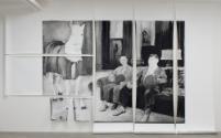 About the artworkThe painter Cecilia Edefalk bases many of her works on reproduction images: a photo, an ad in a newspaper, or a film still. Similarly, she often reproduces her own works, copying her paintings several times over. In the resulting series each work is slightly different from the previous one. This repetition is a way for Cecilia Edefalk to emphasise the uniqueness of the painting. The process is more important that the subject. In Sketch for a Painting Edefalk has added another step to the process. She has painted a film still and then photographed the painting. The original, thus a copy in itself - has turned into a base - the sketch. The subject - Laurel and Hardy - also features in a previous series by Edefalk, At the Moment Untitled, which was born out of a wish to transfer film to painting and to explore their respective iconic aspects. This image is from the silent movie Wrong Again from 1929, which also featured the horse Blue Boy. Signatures, inscriptions and marks Osignerad Selected exhibition history Skiss för en målning (2005) Moderna Museet, Stockholm