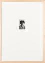 Eventuell signering ej åtkomlig, Påskrift på baksidan av konstverket: "86", Etikett och stämpel på baksidan av konstverket